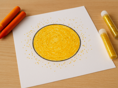 - Step 3: Use a yellow or orange crayon to draw soft, rounded lines around the flame to represent the glow of the light.